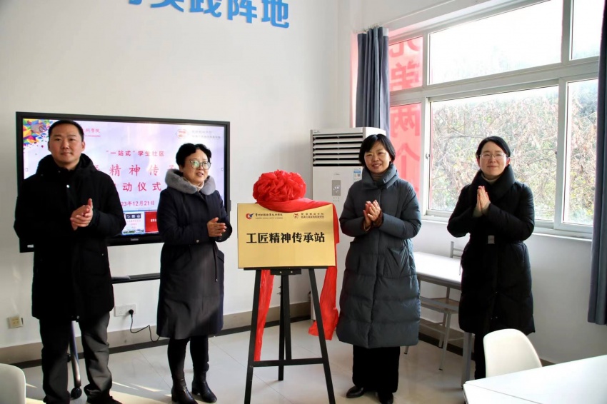 张雪华、蒋小燕、邓晓斌和赵蕾共同为“工匠精神传承站”揭牌。赵蕾介绍了工匠精神传承站的建设情况以及站点特色。到场师生在现场了解了工匠精神的历史渊源、时代内涵,尤其对于传承站中用纳西族文字撰写的“大国工匠”书法作品、员工手工制作的写有“工匠”二字的东巴纸以及全国劳模张忠为庆祝现场工程师班成立赠送的手工电焊火车头模型非常感兴趣。