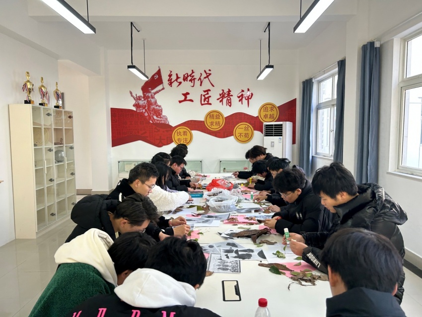 焊接21级劳模班孟欢为同学们做了一场精彩的经验分享会。他通过自己入校来参加各种比赛的经历,勉励同学们要在学习中磨炼技术,在挫折中激发斗志,在拼搏中涵养匠心,在实践中收获成长,努力成为卓越技术技能人才。分享会结束后,同学们进行了创意树叶画DIY活动,近距离体验传统工匠技艺的魅力,体会中华传统技艺之美、工匠之美。